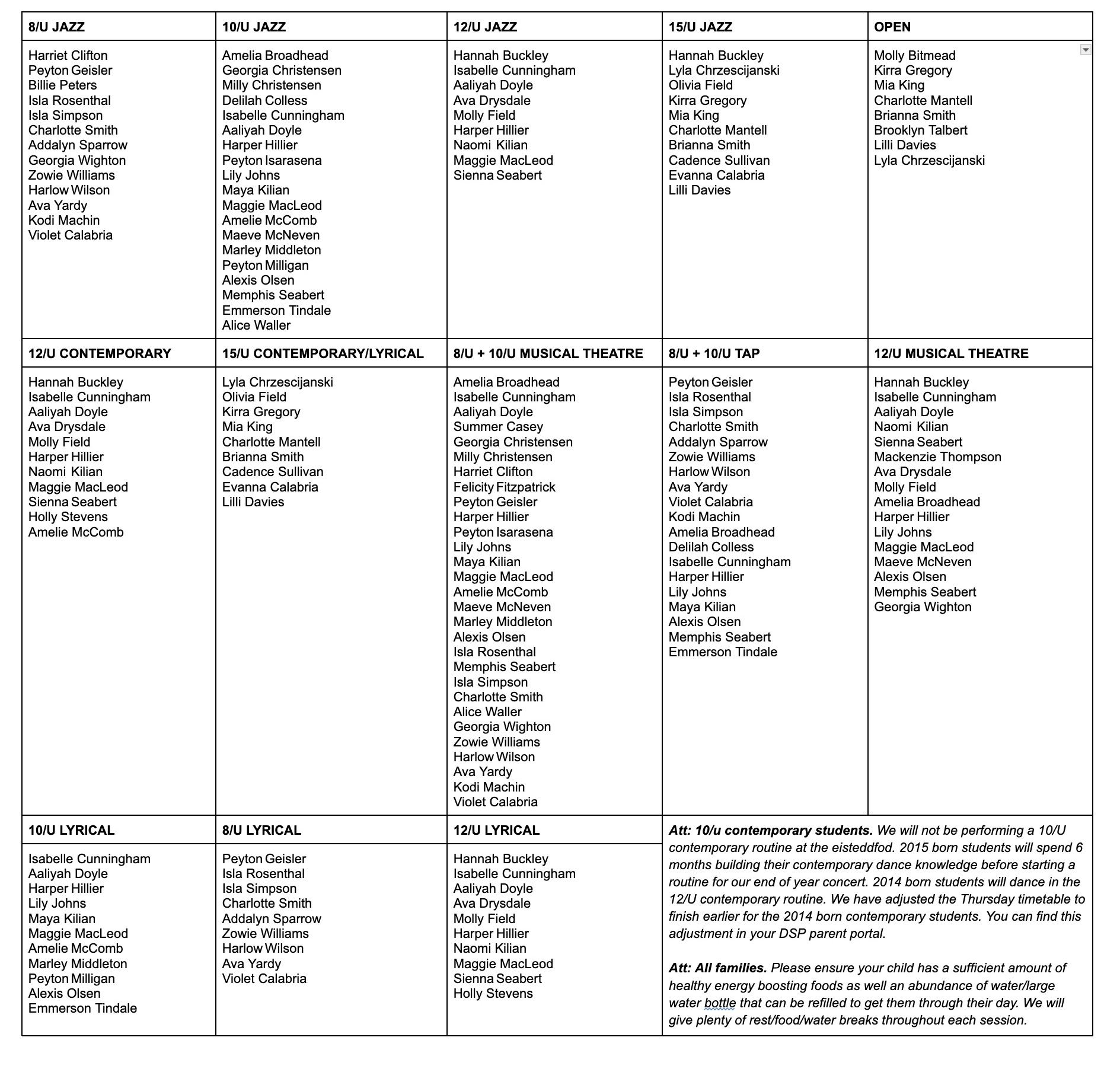 In the final week of the summer school holidays, we hold an Intensive Week for our Performance Team students. This is an important time for the team to come together before the year begins and prepare for the upcoming eisteddfod season. By the end of the week, students will be placed in the appropriate routines based on their enrolled classes, age, and ability.