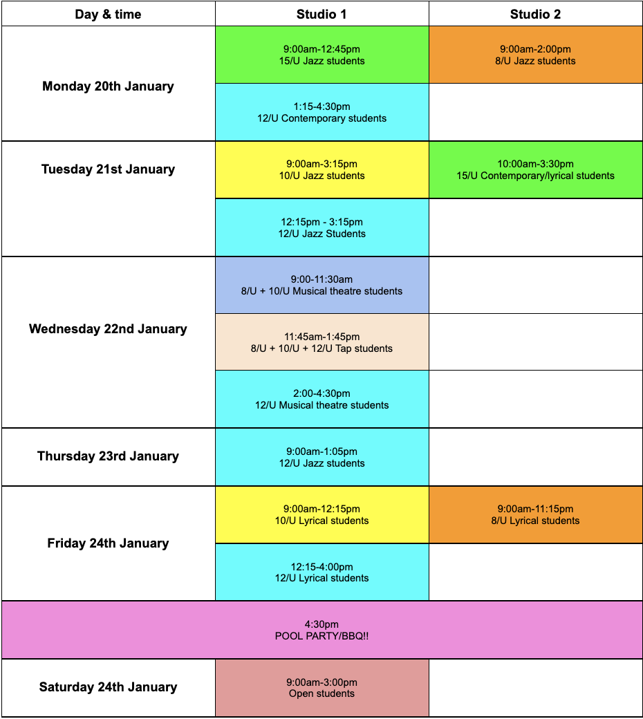 Attendance is compulsory for all team members on the days they are required, as it is necessary to qualify for participation in the routines. The cost of the week is included in your PT performer fee.